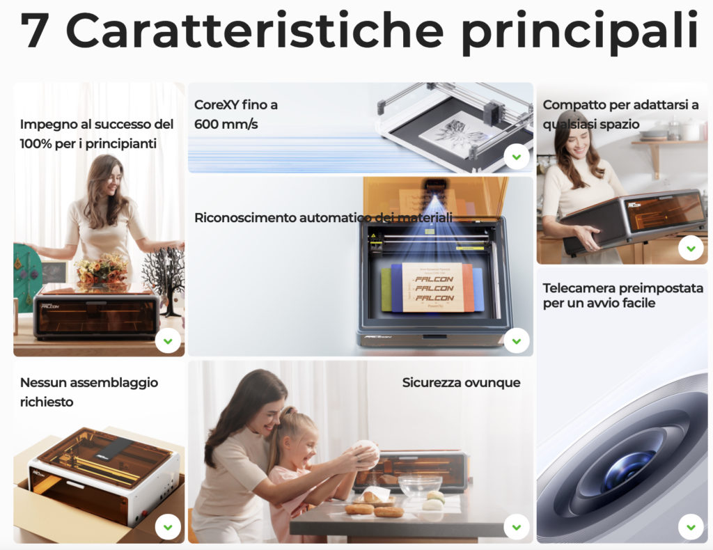 La Creality Falcon A1 è una laser in classe 1, sicura da usare e certificata.