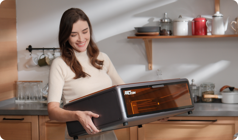 La Creality Falcon A1 è compatta e leggera. Potete spostarla facilmente nella vostra area di lavoro, o tenerla in esposizione per apprezzare il suo design.