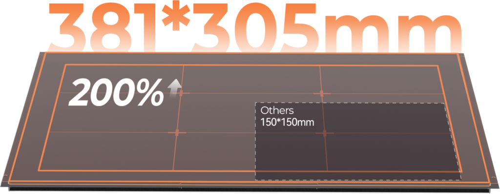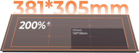 Area di lavoro di 381 x 305 mm in un design estremamente compatto.