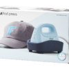 Il cuscino incluso consente di appoggiare stabilmente il cappellino mentre si pressa, mentre la base di appoggio protegge il piano di lavoro dal calore della piastra.
