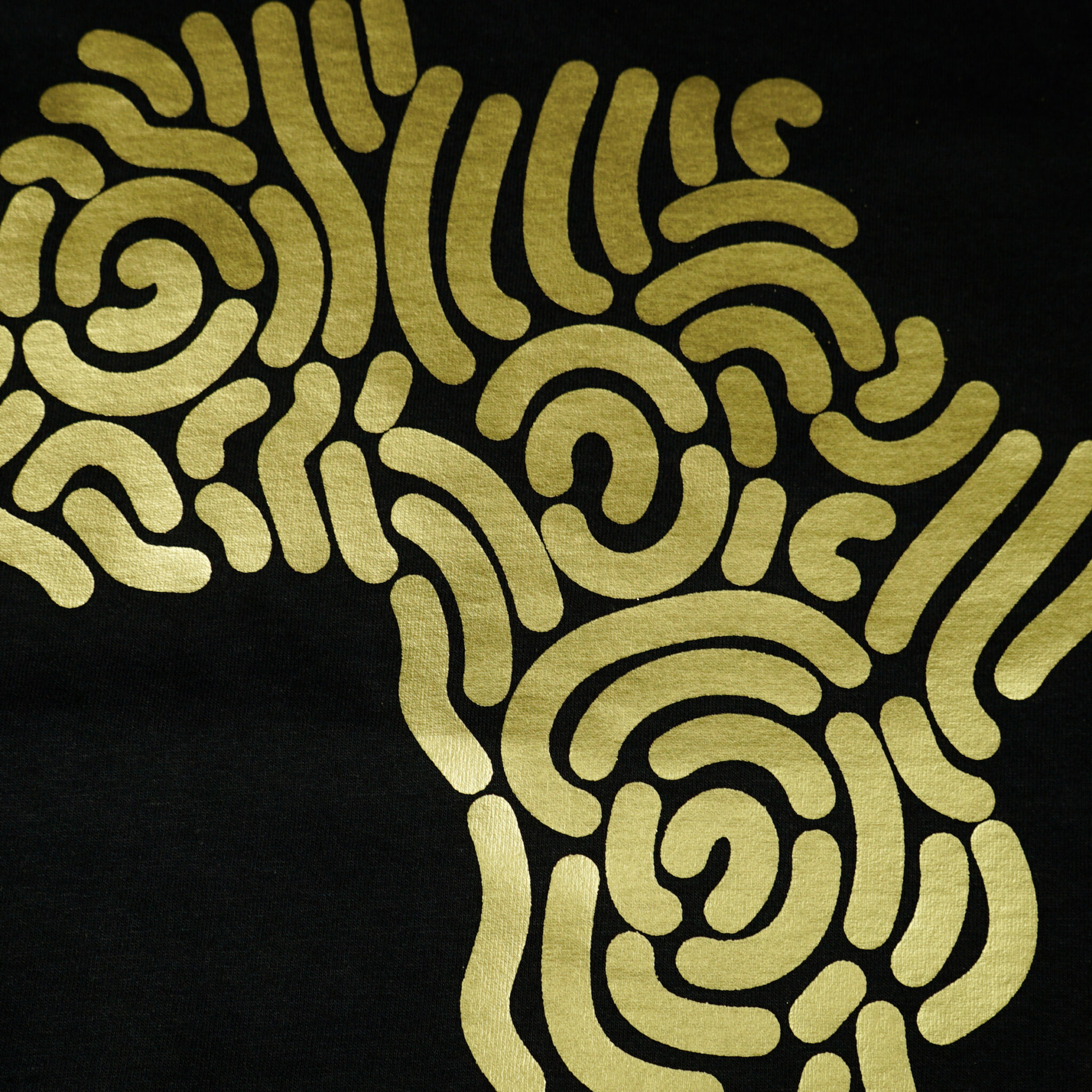Al momento del trasferimento, la colla si depositerà sul tessuto insieme alle porzioni di foil dorato coperte, per un fantastico effetto finale di stampa metallica.