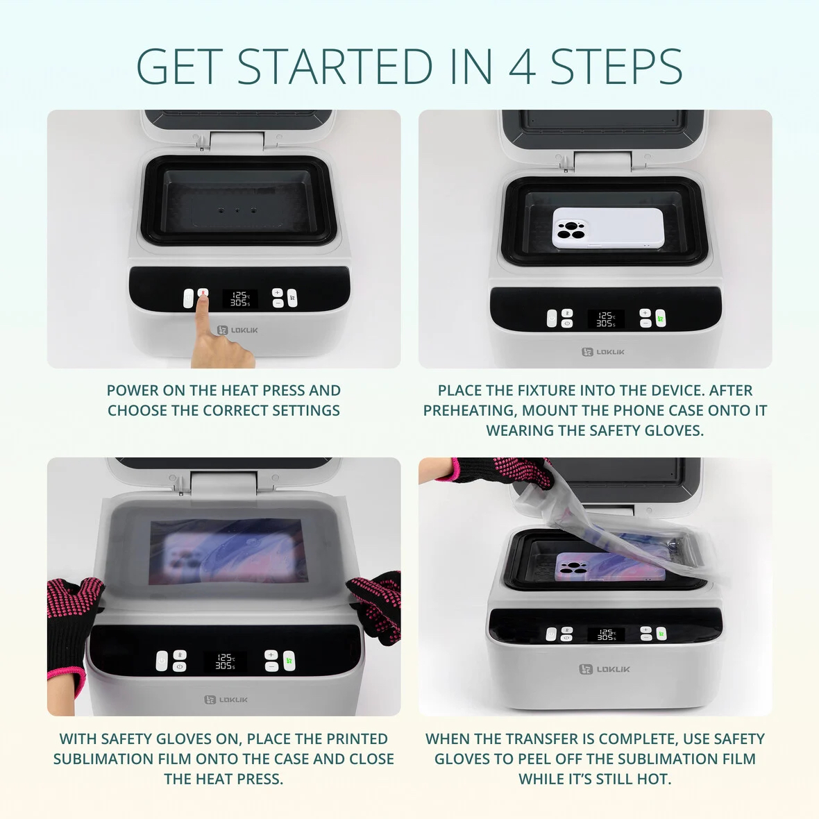 Dai nuova vita alle custodie del telefono con la LOKLiK Phone Case Heat Press. Questa termopressa a sublimazione ti permette di creare design brillanti e durevoli su cover per iPhone, Android e tanti altri piccoli oggetti. In pochi minuti otterrai risultati professionali e a copertura totale.